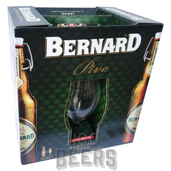 Комплект 4 бири Bernard Svatecni Lezak 12 – 5% алк / 500 мл. със керамични суинг топ капачки и две чаши Bernard 500 мл.